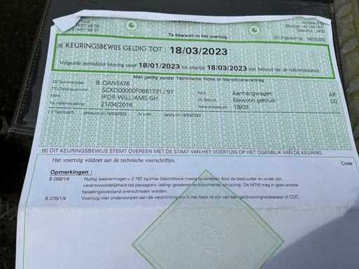 Avec certificat d’enregistrement parties 1 et 2, rapport d’identification et certificat d’inspection valables jusqu’au 18/03/2023.
