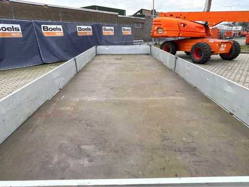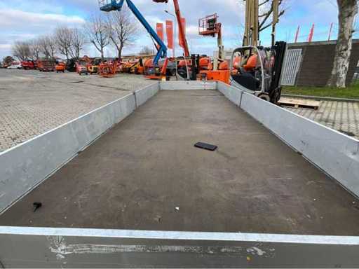 longueur 8050 mm ; largeur 2010 mm ; hauteur 950 mm ; châssis en acier galvanisé ; des déflecteurs en aluminium ; la tête de lit légèrement courbée ; inhibé ; (l’acheteur doit fournir un numéro d’immatriculation valide lors du transport routier ; une fiche ou adaptateur de connexion 7 ou 9 broches avec câble (une rallonge peut être achetée sur place moyennant des frais) ; éventuellement une barre lumineuse supplémentaire ; les papiers d’enregistrement allemands ; certificat de conformité ; (VIE-GY335)