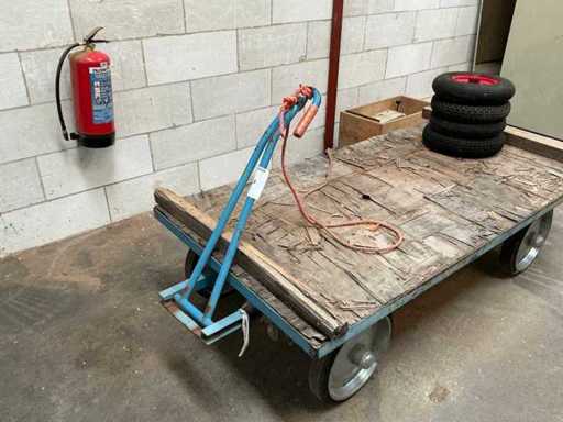 Plateau dimensionnel 200x100xHaut-50cm, avec des roues supplémentaires.