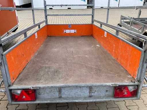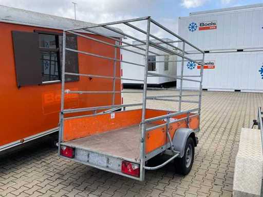 longueur 3900 mm ; largeur 1800 mm ; hauteur 1500 mm ; sans bâche ; sans hayon arrière ; sans roue à jockey ; châssis en acier galvanisé ; cloisons en bois ; porte-têtes ; (l’acheteur doit fournir un numéro d’immatriculation valide lors du transport routier ; une fiche ou un adaptateur de connexion 7 ou 9 broches avec câble (la rallonge peut être achetée sur place moyennant un coût) ; éventuellement une barre lumineuse supplémentaire ; sans papiers d’immatriculation ; sans certificat de conformité ;