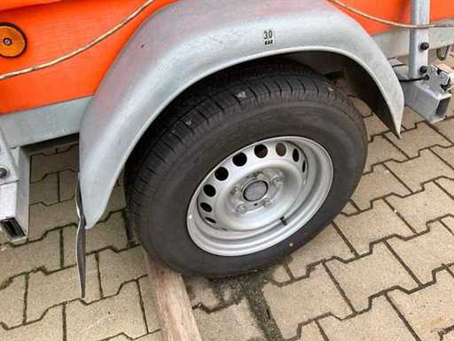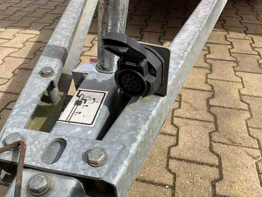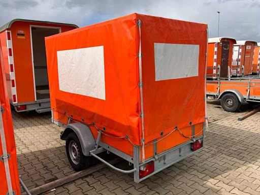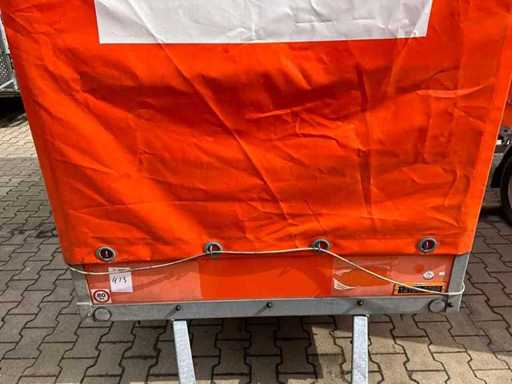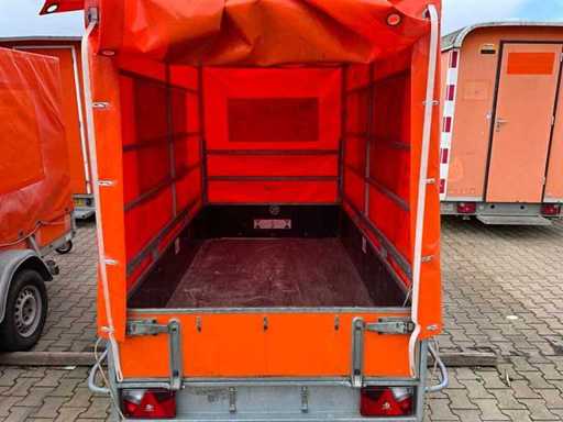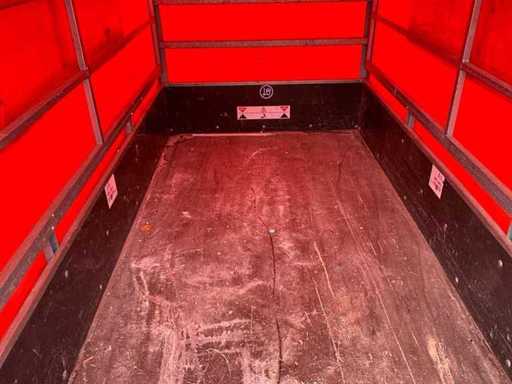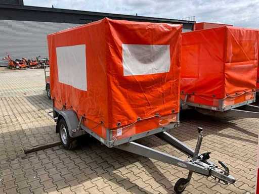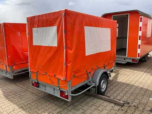 longueur 3900 mm ; largeur 1800 mm ; hauteur 2100 mm ; remorque à auvent ; canopée ; châssis en acier galvanisé ; cloisons en bois ; porte-têtes ; roue à jockey ; (l’acheteur doit fournir un numéro d’immatriculation valide lors du transport routier ; une fiche ou un adaptateur de connexion 7 ou 9 broches avec câble (une rallonge peut être achetée localement moyennant un supplément) ; éventuellement une barre lumineuse supplémentaire) ; sans papiers d’enregistrement ; sans certificat de conformité ;