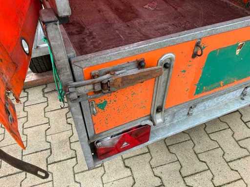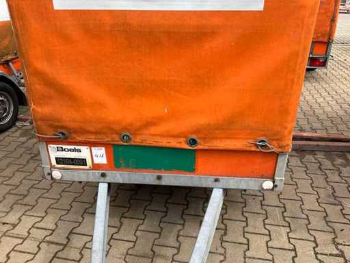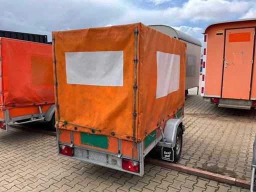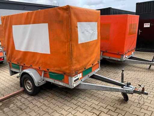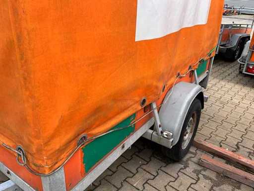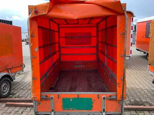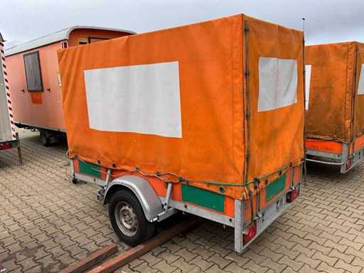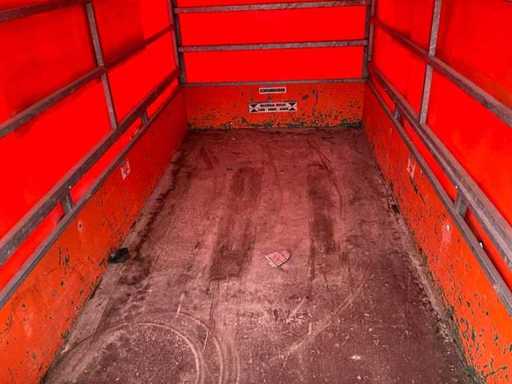 longueur 3900 mm ; largeur 1800 mm ; hauteur 2100 mm ; remorque à auvent ; canopée ; châssis en acier galvanisé ; cloisons en bois ; porte-têtes ; roue à jockey ; (l’acheteur doit fournir un numéro d’immatriculation valide lors du transport routier ; une fiche ou un adaptateur de connexion 7 ou 9 broches avec câble (une rallonge peut être achetée localement moyennant un supplément) ; éventuellement une barre lumineuse supplémentaire) ; sans papiers d’enregistrement ; sans certificat de conformité ;