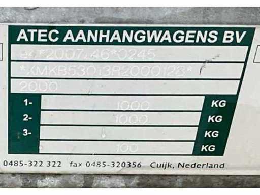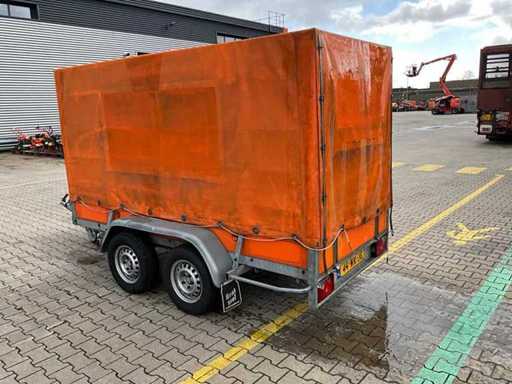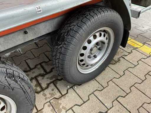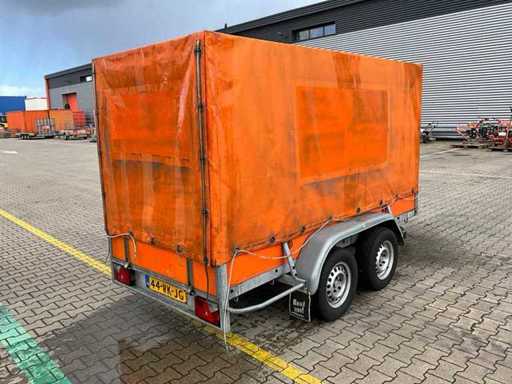 longueur 4700 mm ; largeur 1800 mm ; hauteur 2100 mm ; remorque à auvent ; châssis en acier galvanisé ; cloisons en bois ; roue à jockey ; frein à dépassement ; (l’acheteur doit fournir un numéro d’immatriculation valide lors du transport routier ; une fiche ou adaptateur de connexion 7 ou 9 broches avec câble (une rallonge peut être achetée sur place moyennant des frais) ; éventuellement une barre lumineuse supplémentaire ; les papiers d’immatriculation néerlandais ; sans certificat de conformité ;