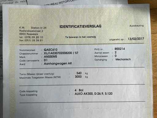Remorque Anssems PSX2-3000 2003 (3T)