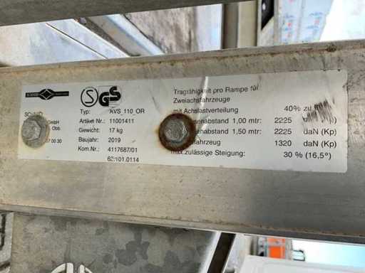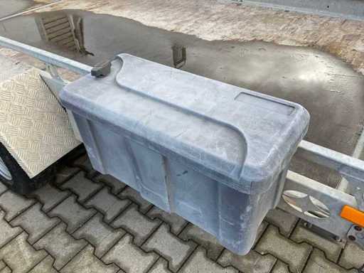 longueur 5550 mm ; largeur 2360 mm ; hauteur 2180 mm ; châssis en acier galvanisé ; rampes fixes ; des yeux liés ; roue à jockey ; frein à dépassement ; (l’acheteur doit fournir un numéro d’immatriculation valide lors du transport routier ; une fiche ou adaptateur de connexion 7 ou 9 broches avec câble (une rallonge peut être achetée sur place moyennant des frais) ; éventuellement une barre lumineuse supplémentaire ; les papiers d’enregistrement allemands ; certificat de conformité ; (M-C3622)