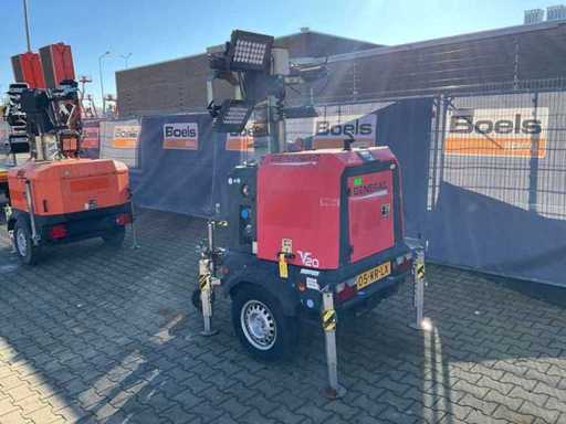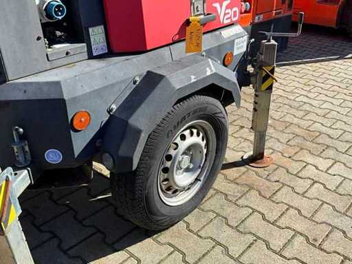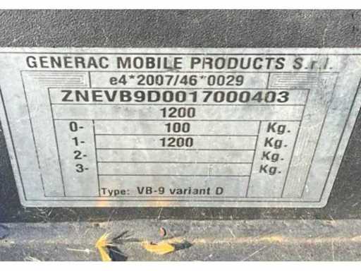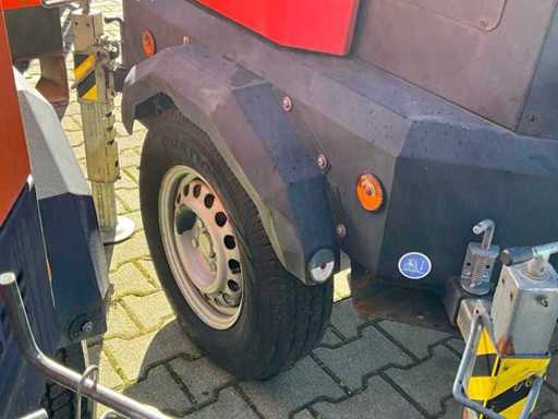 mât télescopique hydraulique ; hauteur maximale de travail de 8,5 mètres ; 4 lampes LED de 300 watts ; moteur diesel Kubota ; alternateur Linz ; 4x pieds à balancier ; les heures de lecture non lisibles ; réservoir de carburant intégré ; 230 volts ; fentes pour fourches élévateurs ; roue à jockey ; frein à dépassement ; état de fonctionnement du moteur ; l’affichage défectueux ; (l’acheteur doit fournir une plaque d’immatriculation valide lors du transport routier ; une prise ou un adaptateur de connexion 13 broches avec câble (rallonge peut être achetée sur place moyennant des frais) ; éventuellement une barre lumineuse supplémentaire ; les papiers d’immatriculation néerlandais ; sans certificat de conformité ;