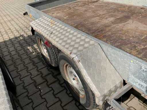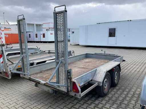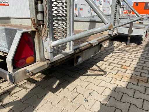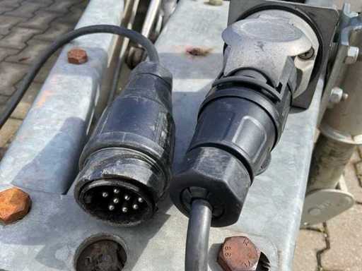 longueur 5140 mm ; largeur 2300 mm ; hauteur 2180 mm ; Description : Cadre en acier galvanisé ; rampes fixes ; des yeux liés ; support de godet pour pelle mécanique ; roue à jockey ; inhibé ; (l’acheteur doit fournir un numéro d’immatriculation valide lors du transport routier ; une fiche ou adaptateur de connexion 7 ou 9 broches avec câble (une rallonge peut être achetée sur place moyennant des frais) ; éventuellement une barre lumineuse supplémentaire ; les papiers d’enregistrement allemands ; certificat de conformité ; (B-RY5244)