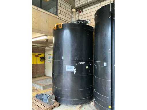 Volume environ 7200L, dimensions environ 2200xH3050mm, réservoir vide et rincé