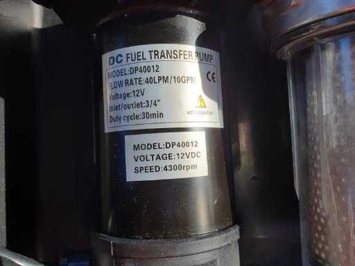 POMPE DIESEL : 40 LPM (10 GPM) - 12 VDC - entrée/sortie : 3/4" - Cycle de travail 30 min - 4300 tr/min / ADBLUE PUMP : 17 LPM (4,5 GPM) - 12 VDC ; 6A - 40PSI - inutilisé
