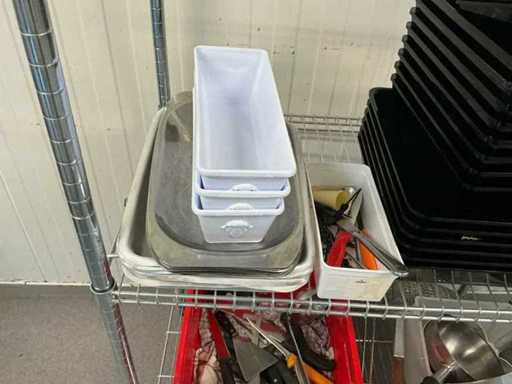Différents équipements de cuisine avec un support assorti. Vente due à l’arrêt de l’activité.