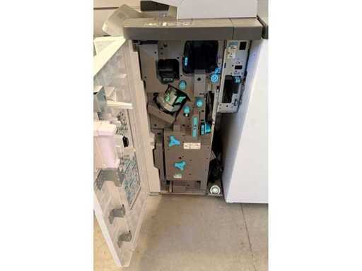 équipée d’un scanner automatique, bacs standard papier + grand bac sur le côté pour les formats SRA3 maximum, fierry, decurleur, buffer, finisseur agrafage création cahier en ligne avec agrafage au centre. compteurs peu élevés. en parfait état de fonctionnement. matériel a été sous maintenance avec Ricoh. Entretien régulier avec des pièces d’origine. productivité 65 pages par minute. papier épais jusqu’à 350 gr/m²