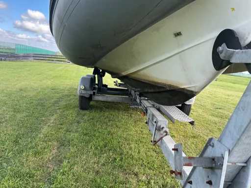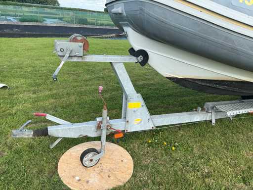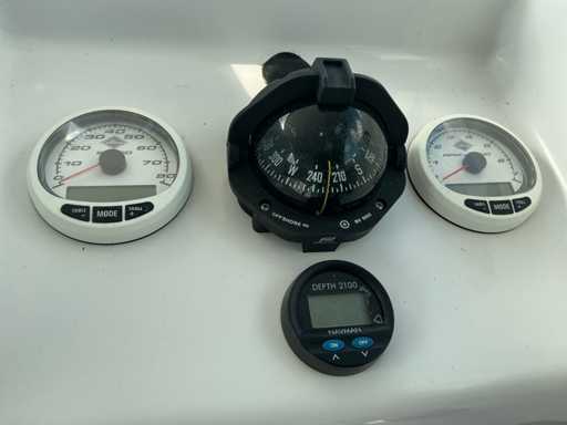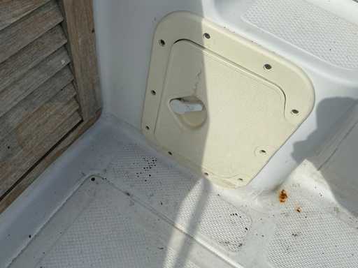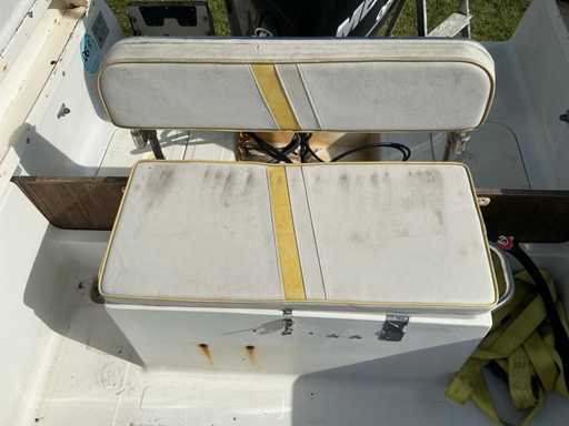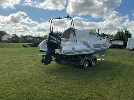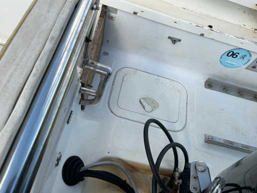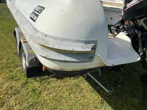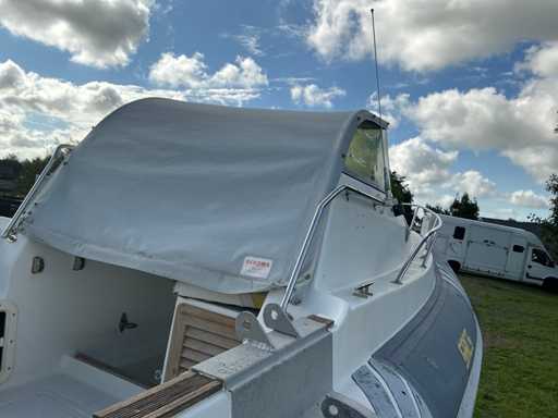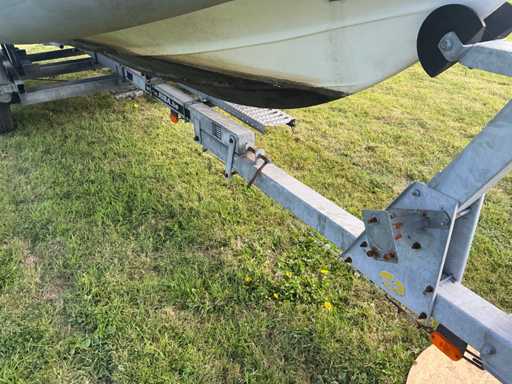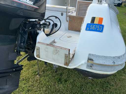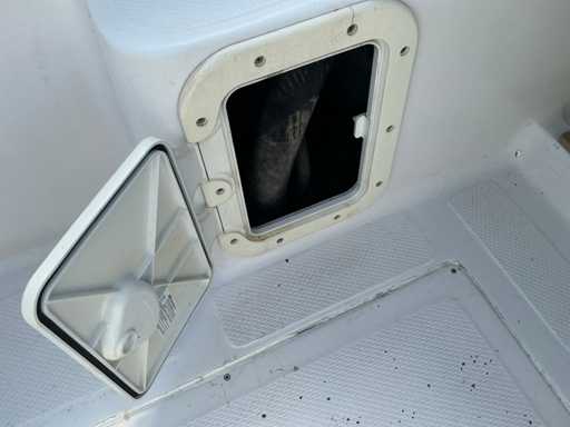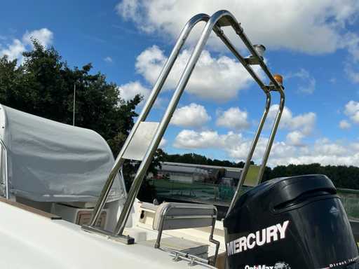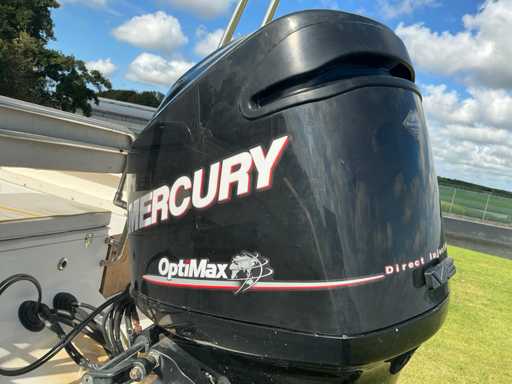 Equipé de : moteur Mercury 135HP V6 avec fonction d’assiette, voile, éclairage, 7 personnes, numéro d’immatriculation 45-52-YV, bimitop, bâche complète en 2 parties