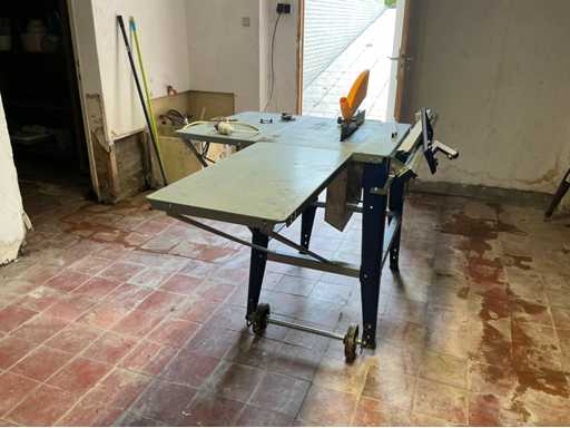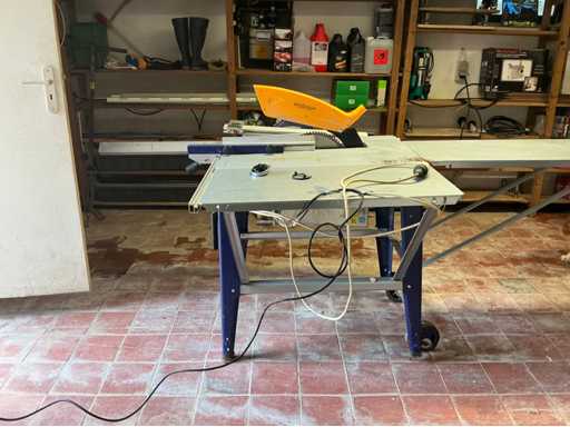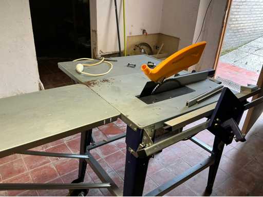 La scie à table est dotée d’une lame de scie réglable en hauteur et en angle, et est équipée d’un guide parallèle et d’un guide d’angle pour un travail précis et sûr. Grâce à la construction métallique stable et aux plateaux de table extensibles à gauche et à droite, cette machine est idéale pour scier des pièces plus grandes.