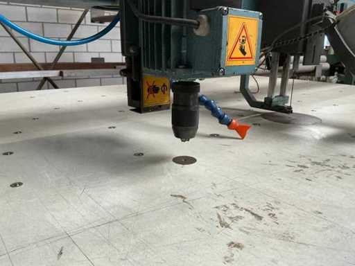 Taille de la table 2000x1380 mm, largeur entre les montants du pont d’environ 3650 mm.
