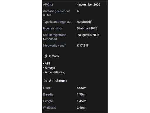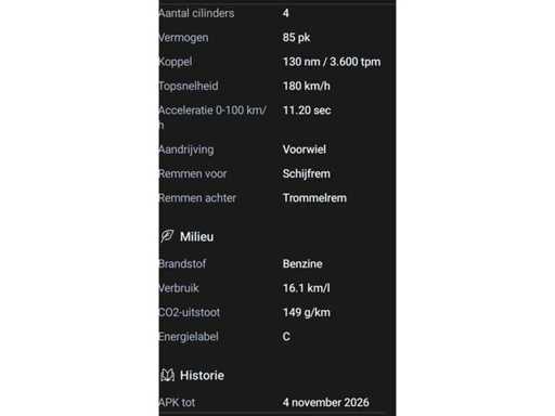 Caractéristiques : Rétroviseurs extérieurs réglables électriquement et chauffants, pare-chocs couleur carrosserie, verrouillage centralisé avec télécommande, jantes en alliage 15" couleur métal, phares antibrouillard, lecteur radio-CD/MP3, sièges arrière rabattables par pièces, climatisation (automatique), thermomètre extérieur, régulateur de vitesse, vitres électriques avant, direction assistée, volant réglable au volant, sièges avant réglables en hauteur, airbags de sécurité avant latéraux, conducteur airbag, airbag passager, classe d’alarme 1 (immobilisateur), système de freinage antiblocage, troisième feu de freinage, verrouillage centralisé avec télécommande, volant multifonction