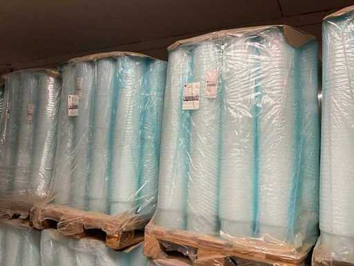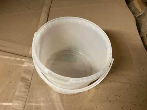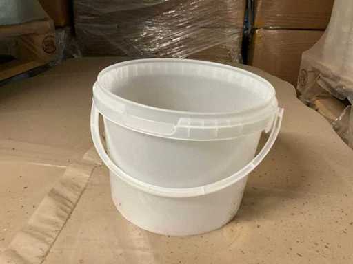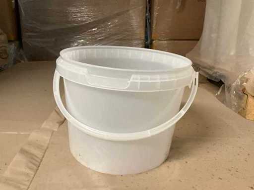 Seaux de remplissage EZE2300-1 Natur 1000 équipés d’une poignée, chacun d’un diamètre de 17 cm et d’une hauteur de 13 cm avec un couvercle assorti. = 4 palettes + un couvercle de palette (6000 pièces)