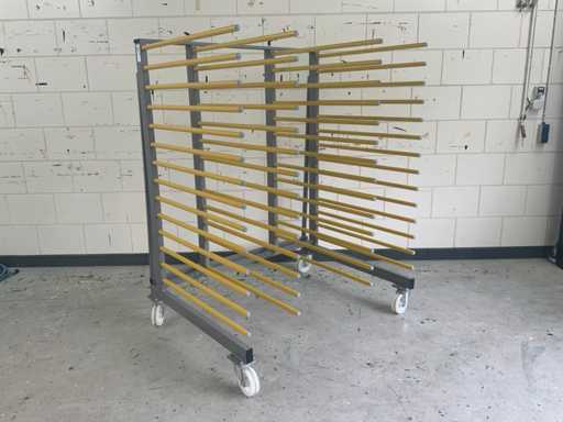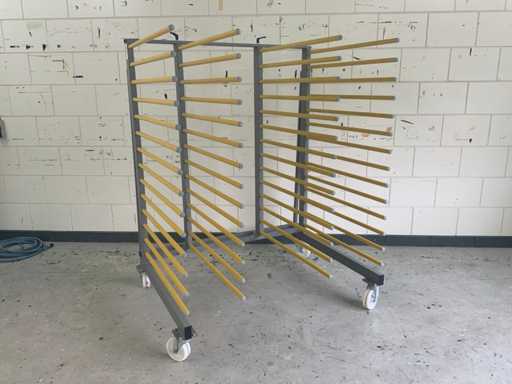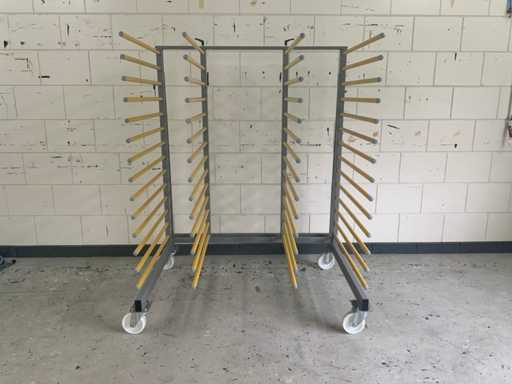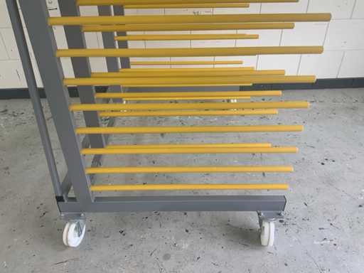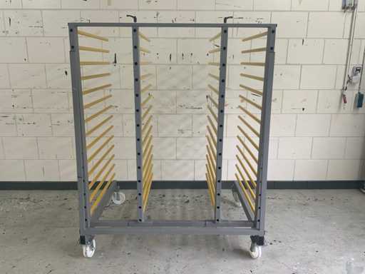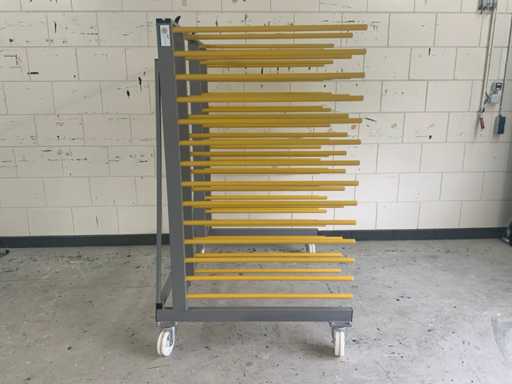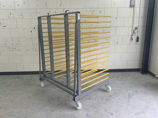 Profondeur : 100cm, 14 niveaux, capacité de charge totale 700kg. Équipé de 4x roues pivotantes en nylon. Paniers intermédiaires réglables.