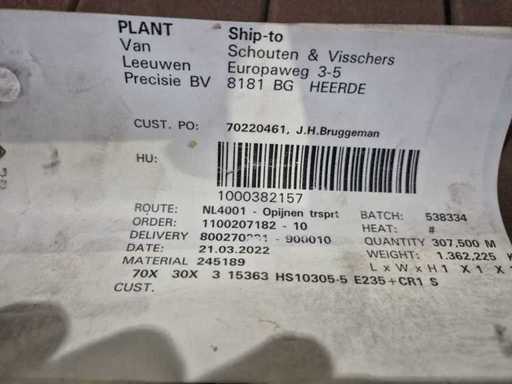 - Dimensions 70x30x3 mm Longueur 6150 mm