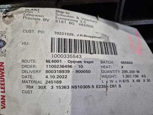 - Dimensions 70x30x3 mm Longueur 6150 mm