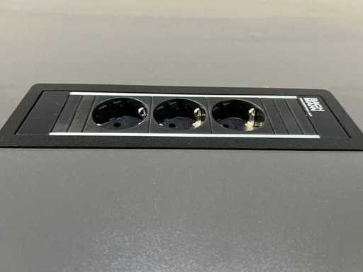 Table de conférence haute moderne de Sedus avec un ensemble assorti de 6 tabourets de bar Casala. La table est dotée d’un dessus en mélamine anthracite et repose sur des pieds noirs avec une base en acier inoxydable. Un câble d’électrification Bachmann est intégré au sommet, idéal pour connecter ordinateurs portables et autres équipements lors des réunions.