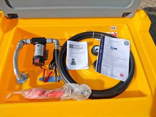 Réservoir de carburant avec pompe 12 volts, tuyau d’environ 4 mètres et buse de remplissage automatique, manomètre de niveau, couvercle, pompe auto-amorcée, inutilisé et verrouillable