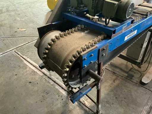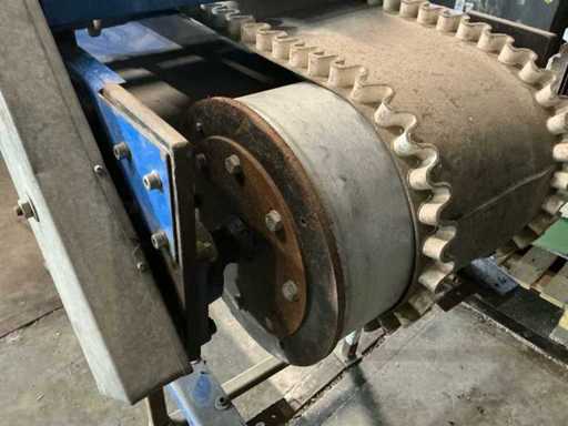 Comprend : alimentateur vibrant à régulation de fréquence, convoyeur de 300 mm de large, entonnoir avec bride de 350 mm, tambour magnétique rotatif, convoyeur de vitesse réglable,