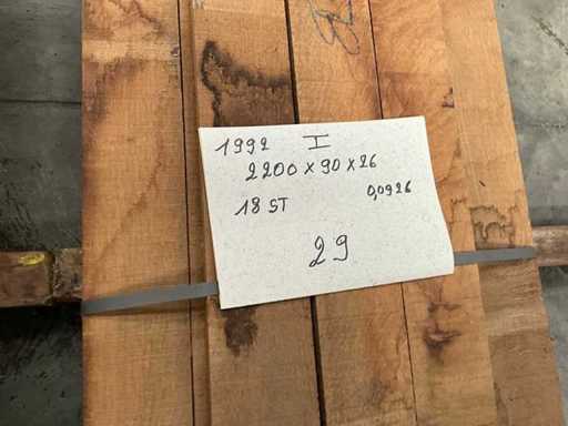 Sur la palette 5x n° 20+18+19+28+29, dimensions 2200-2150x100/90/60x28 mm
