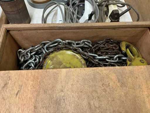 Composé d’une machine à disque de coupe transversale Makita, de diverses perceuses à pierre, des ciseaux à disjoncteurs, un fer-refaire 3x, un palan à chaîne, un lot de clés