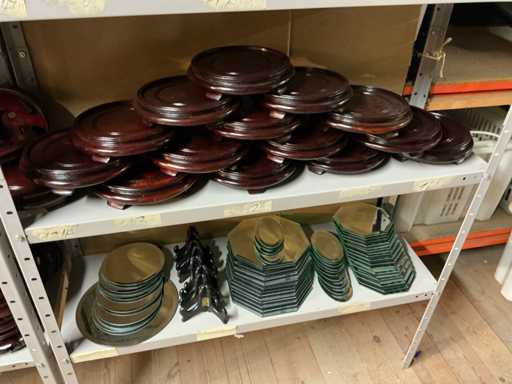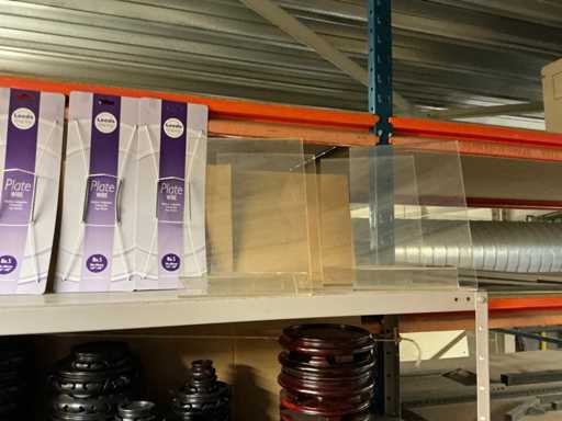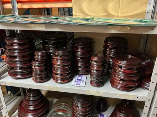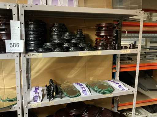 Série de divers socles, supports en PVC, supports à assiettes, plateaux de speigel, supports à plaques...