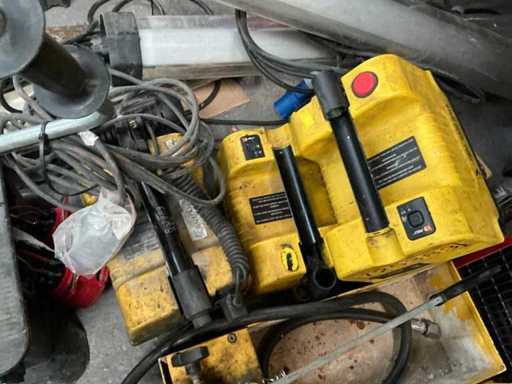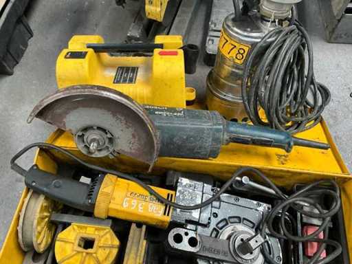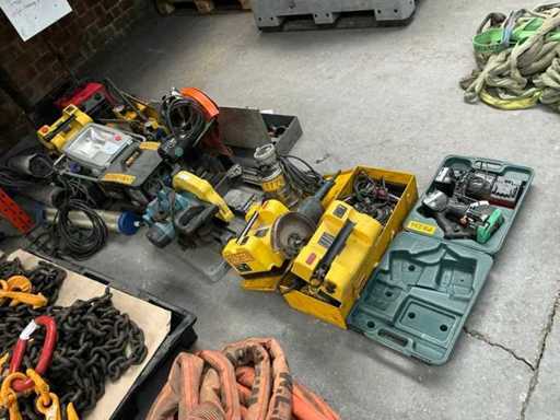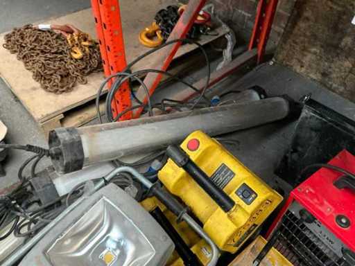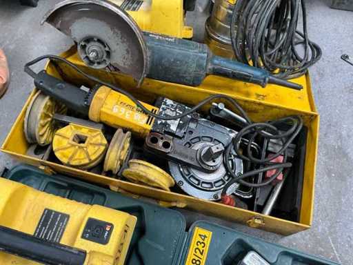 Comprenant, entre autres, : une coupe à tige filetée sans fil Hitachi, une machine à filetage Rems, une scie à bras radial Alma et Jepson, divers systèmes d’éclairage Peli 9430 Rals, un éclairage de jardin, une connexion de cour, un chauffage...