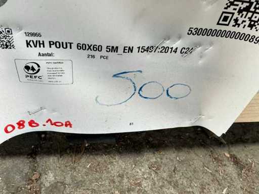 - 235 pièces, poteaux KVH 60x60 mm de longueur 500 cm.