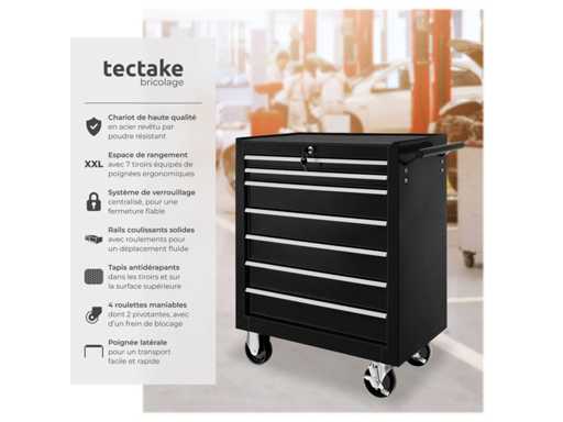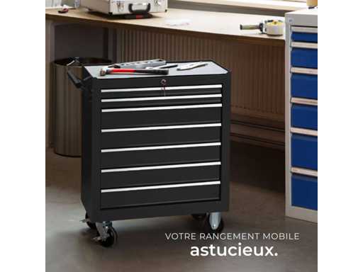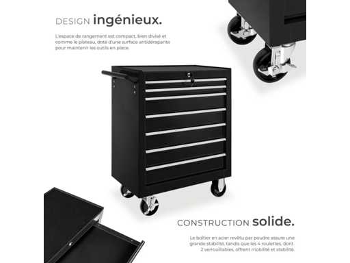 Matériaux : Surface en Acier revêtu par poudre. / Acier. / Roues en Matière Plastique.