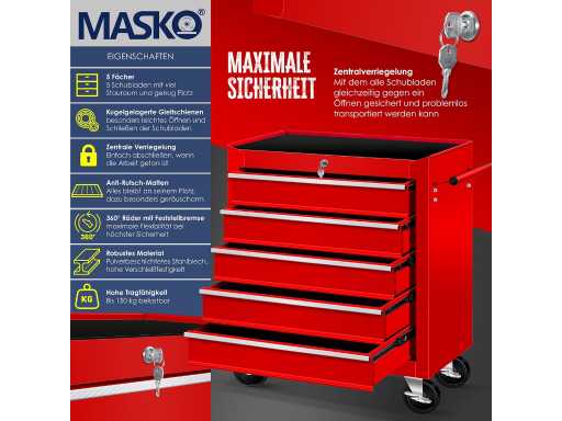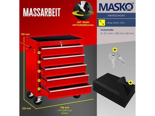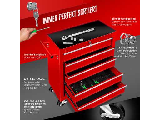 • Tiroirs : 510 x 277 x 100 mm (5 compartiments de 85 mm de haut et 2 compartiments de 40 mm)