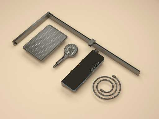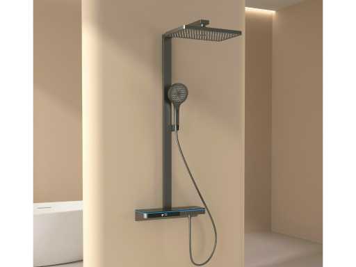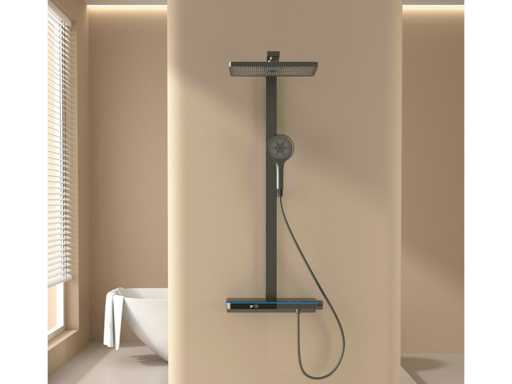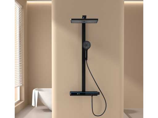 Couleur noir mat ou gris canon de fusil (couleur au choix, veuillez envoyer un e-mail à info@mawialux.nl après la clôture de la vente aux enchères) Douche à effet pluie intégrée avec affichage numérique, Matériau laiton/acier inoxydable/ABS, Couleur or brossé, Intérieur en céramique, Pomme de douche rotative et inclinable 32x22cm, Douchette réglable avec tuyau de douche (abs) et 2 fonctions d’eau, 3 boutons-poussoirs de fonction pour réguler le niveau d’eau Équipé d’un micromoteur numérique de contrôle au moyen du débit d’eau, pas de puissance requise, température lisible numériquement, indication numérique durée, intérieur en céramique bon pour 800 000 fois ouverture/fermeture sans fuite, épaisseur de la plaque : 12 UM, pression de service : 2-12 kgf/cm2, température de fonctionnement : 0 à 90 degrés Celsius, traité anti-calcaire, bec de robinet de bain, État : neuf dans la boîte, Caractéristiques spéciales Garantie de 2 ans, distance c.t.c. de 150 mm