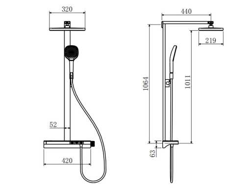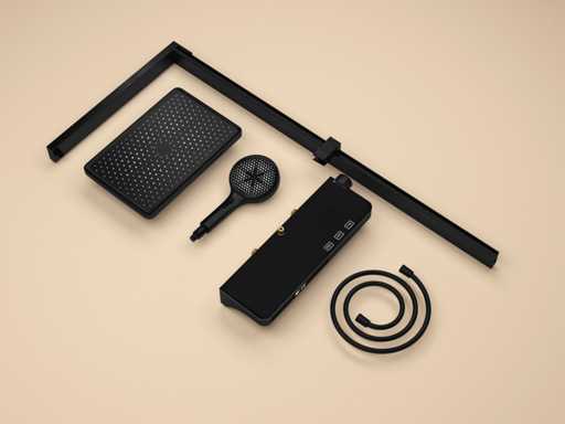 Set de douche à effet pluie design en saillie - Affichage numérique - Noir mat ou gris bronze