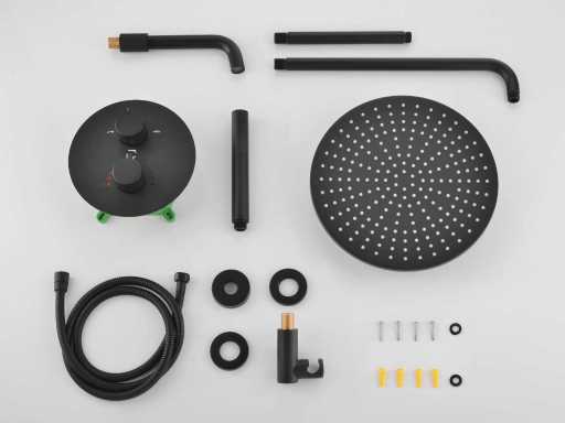 Choix de couleur : chrome, gris bronze, acier inoxydable brossé, or rose, noir mat (vous avez le choix de 1 de ces couleurs, veuillez envoyer votre choix par e-mail sur info@mawialux.nl immédiatement après la clôture de la vente aux enchères) douche à effet pluie intégrée avec robinet thermostatique, Matériau laiton, , Robinet robinet thermostatique intelligent, Intérieur en céramique, Pomme de douche 30x30 cm, Douchette réglable avec tuyau de douche et suspension en laiton, Équipée d’un bec de robinet de bain, pomme de douche avec sorties d’eau en plastique pour éliminer facilement le calcaire, pomme de douche inclinable et rotative, intérieur en céramique bon pour 800 000 fois ouvert/fermé sans fuite, épaisseur de la plaque : 12 UM, pression de travail : 2-16kgf/cm2, température de fonctionnement : 0 à 90 degrés Celsius, traité anti-calcaire, État : neuf dans la boîte, Caractéristiques spéciales garantie de 2 ans, haute qualité, y compris boîte intégrée pour une installation facile, l’ensemble est livré avec une tige murale et une tige de plafond (voir dernier photos) afin que vous puissiez choisir l’option que vous souhaitez