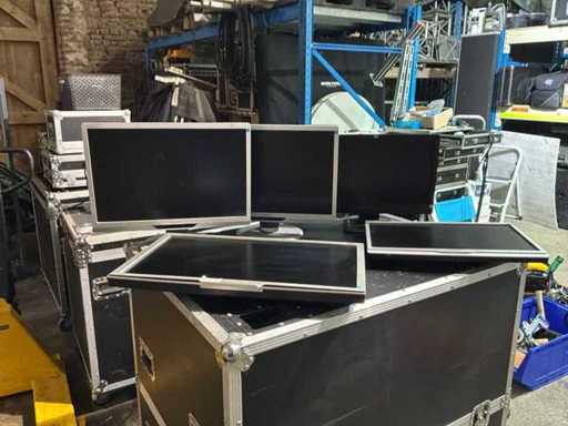 2 x tv 65’’ Sisco - 2x tv NEC en fly case 46’’ - 9 écrans pc - 10 claviers