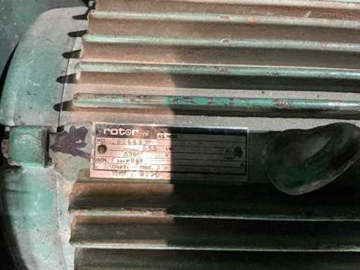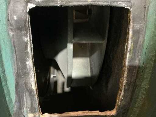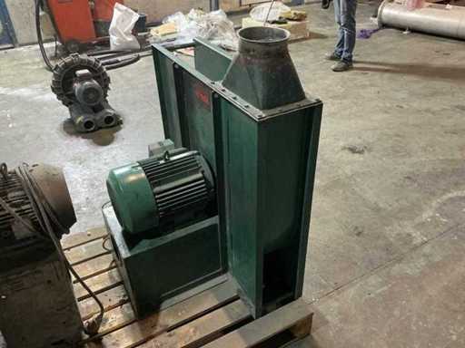 Équipé de : Chicago Blower, aspiration monoface, hélice radiale, installation fixe, entraînement direct, rotor radial, Entrée : axiale (avant), prise : radiale (haut), montage : Plaque inférieure / châssis, continue (industriel), puissance moteur : 5,5 kW, 1200 m3/heure, connexion de diamètre intérieur 270 mm, sortie de connexion 150 mm, tension : Δ 380 V, fréquence : 50 Hz, vitesse nominale : ± 2930 tr/min, courant nominal : environ 11 A, classe d’isolation : F, classe de protection : IP54, Cos φ : 0,88, S1 (continu).