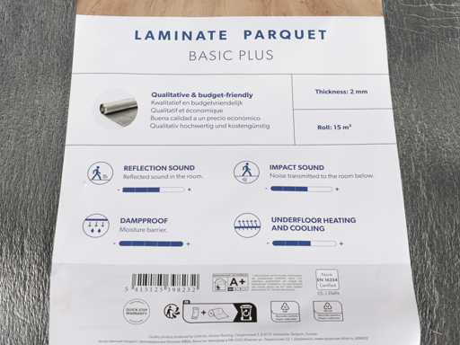 Série de sous-plancher en feuille d’argent, récupérant le son, étanche à la vapeur, avec recouvrement de 100 mm, épaisseur de 2 mm, légèrement nivelé, adapté au stratifié et au parquet, 5 rouleaux de 15 m2