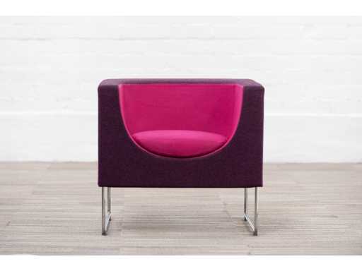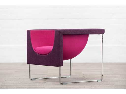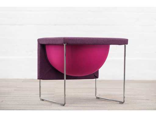 Nube est un dessin de Jesús et Jon Gasca. Les lignes extérieures du fauteuil Nube de STUA sont composées de surfaces plates et parallèles tandis que l’intérieur est rond et chaud, comme le corps humain. Cette contradiction est renforcée par l’utilisation de deux couleurs de tissu. Le cadre en acier chromé massif est léger, minimaliste et presque invisible.