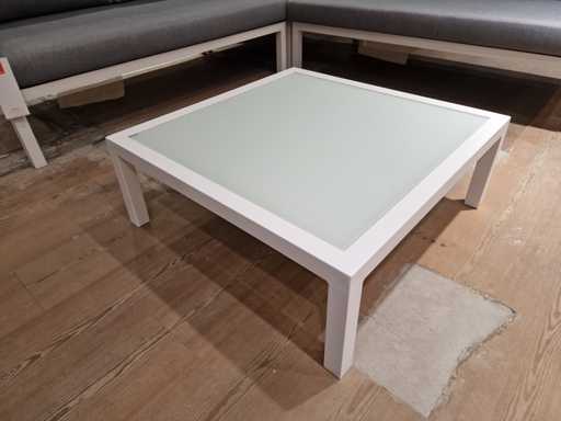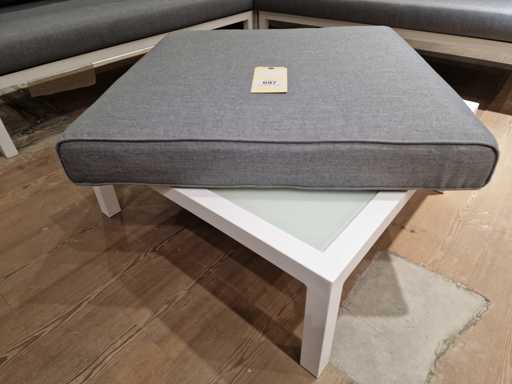 Suns Barolo Corner Lounge Set 4 pièces Alu White Matte + Oléfines, Répulsif à l’eau gris clair - Table basse incluant verre trempé et coussin pouf