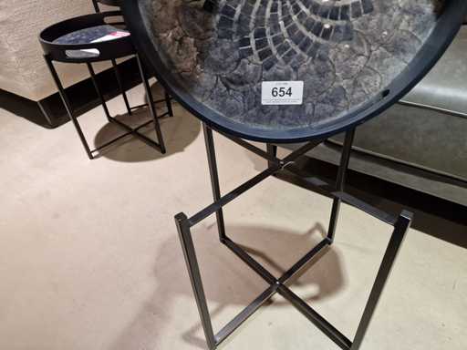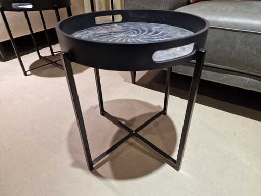 Table basse domestique DTP diamètre 41cm - Plateau + support avec pieds en métal noir