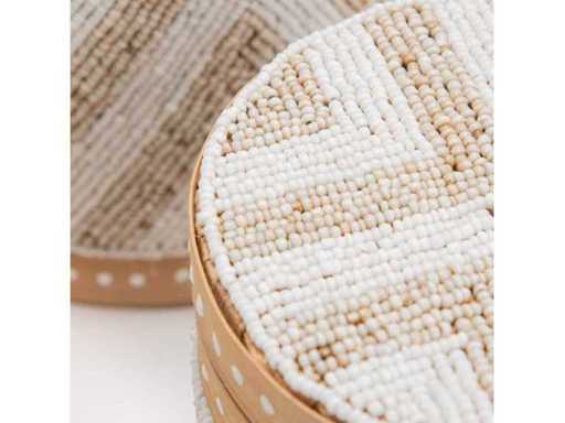 3 boîtes de rangement, entièrement doublées à la main de petites mini-perles.
