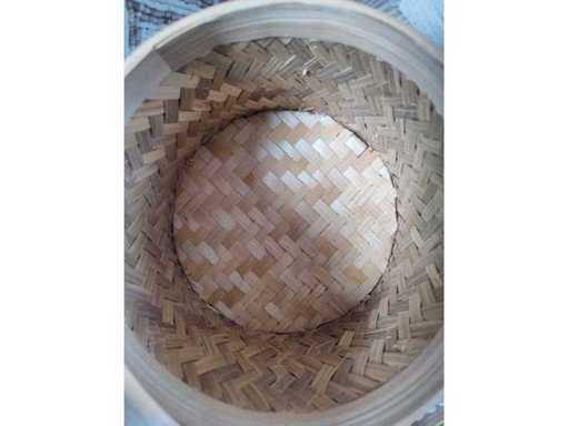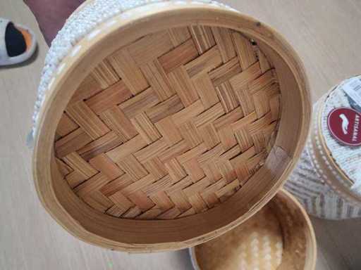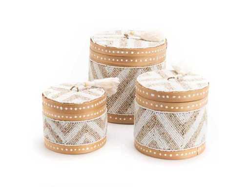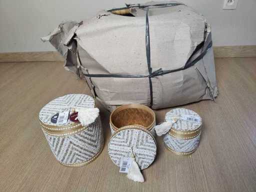 Table d’appoint en bambou + Ensemble de 3 boîtes de rangement artisanales