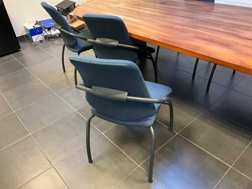 Dimensions de la table : 300x120x75cm complet avec 2x armoire dont 1x armoire ouverte en bois avec dimensions : 102x33x202cm, 1x armoire murale ouverte en métal avec dimensions : 120x30x200cm