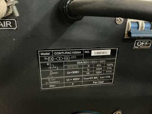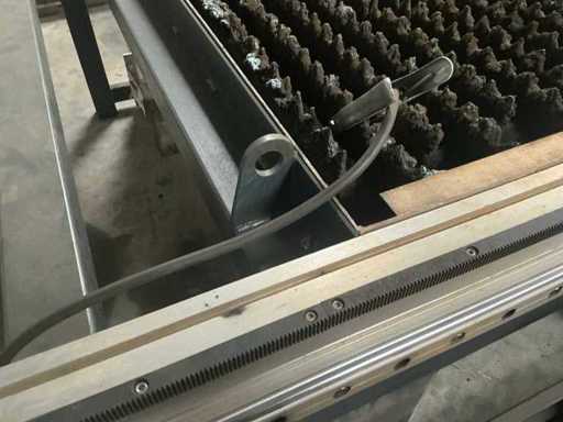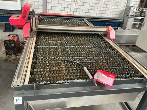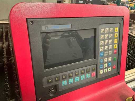 Équipé d’un contrôle F2100B et d’une source d’alimentation Conti-Weld Cinti-Pac 105NH, taille utilisable de la table d’environ 2700x1450mm, taille totale d’environ 3500x2250x1500mm.