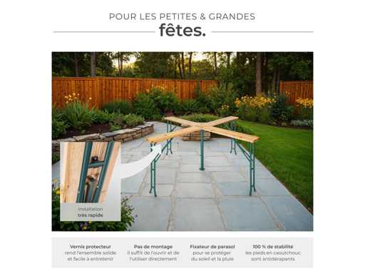 Diamètre de l'emplacement pour le parasol : environ Ø 55 mm.
