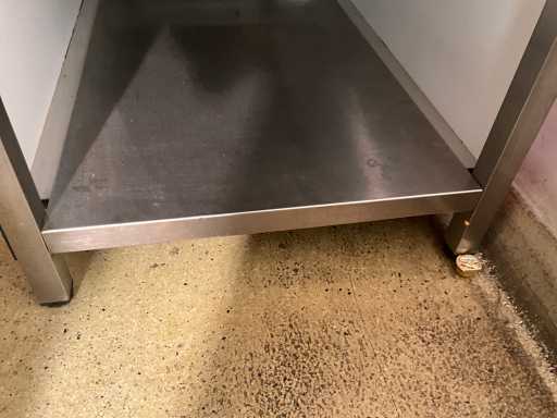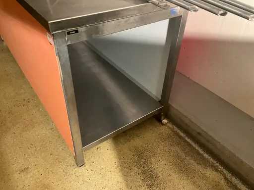 Table de travail en acier inoxydable vv legger et plaque de plastique avant et côtés, située dans la pièce 90