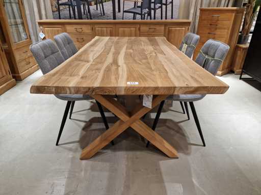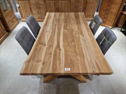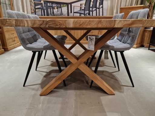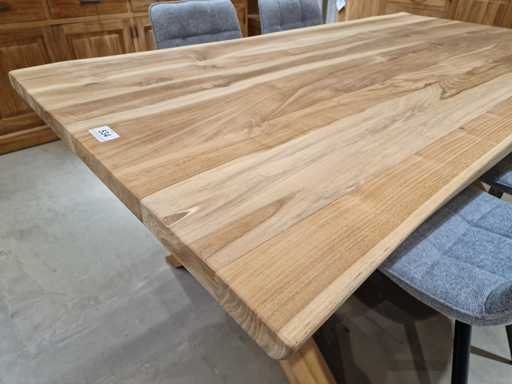 Table intérieure en teck diamanté 180 x 100 cm Trunck naturel avec jambe en X en teck