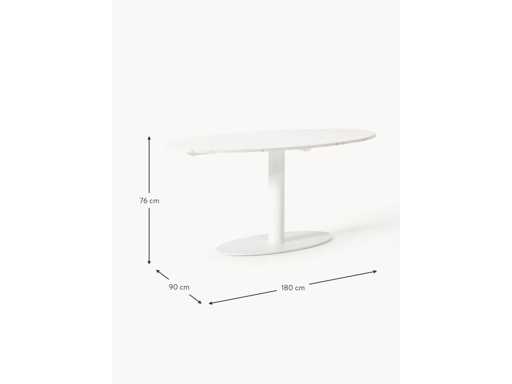 Couleur Plateau : blanc, marbré Pied : blanc Matière Plateau : marbre Cadre : métal, revêtement par poudre Instructions Produit livré à plat, assemblage requis Dimensions globales : larg. 180 cm, haut. 76 cm, prof. 90 cm Épaisseur du plateau : 22 mm Poids : 115 kg Charge maximale : 200 kg